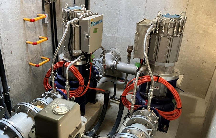 マイクロ水力発電機は、地下の流入弁室に据え付けられています。