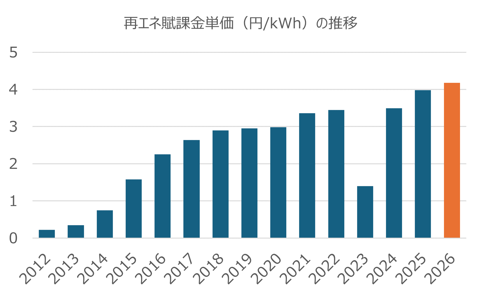 昨年度の3.98円/kWhから、2026年度は4.18円/kWhへと引き上げられます。