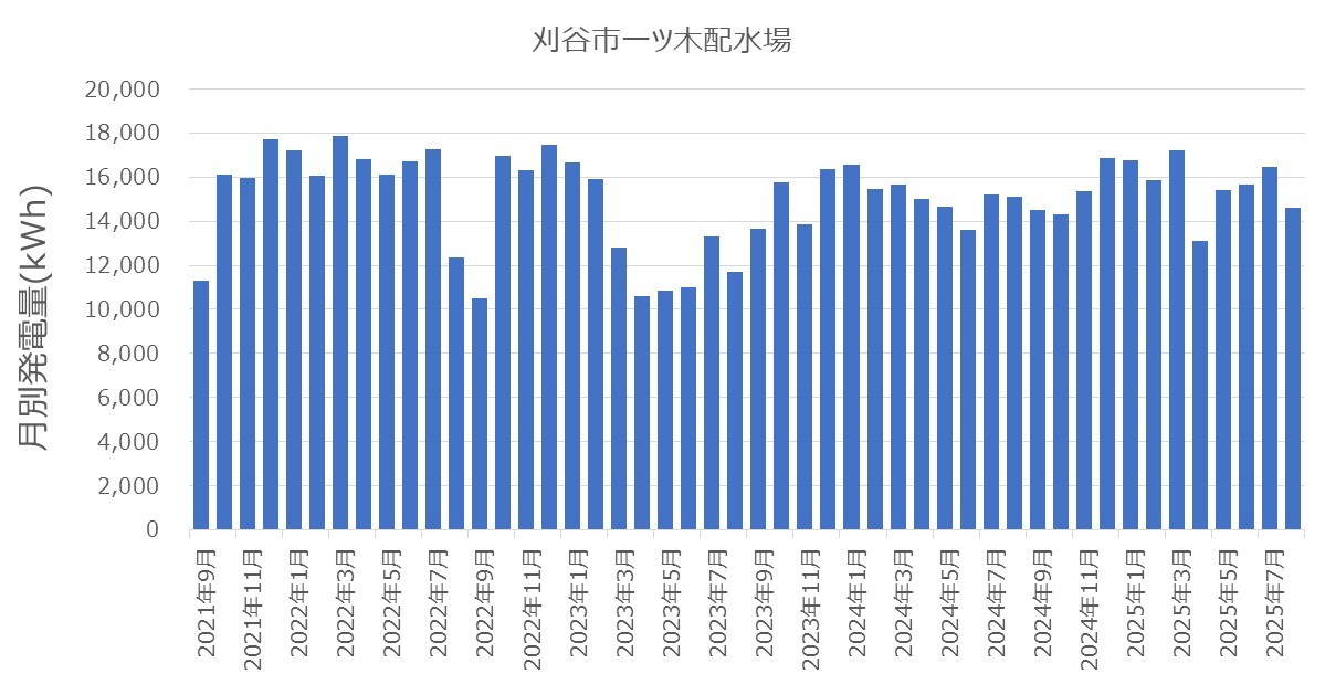 刈谷市一ツ木配水場マイクロ水力発電所は4年経過2025-09-22