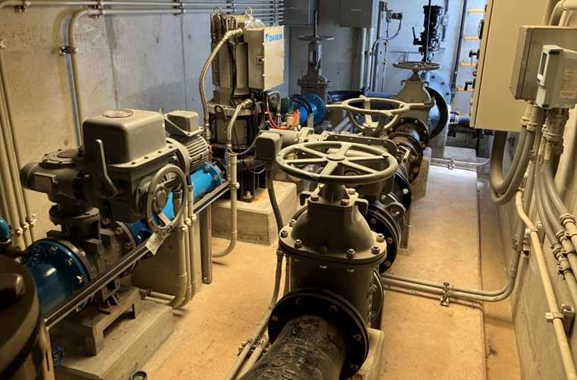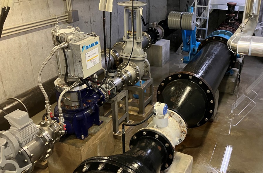 マイクロ水力発電機は、地下の流入弁室に据え付けられています。