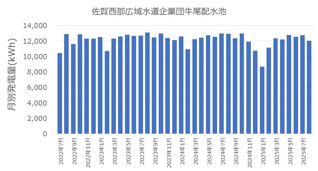 佐賀西部広域水道企業団牛尾配水池マイクロ水力発電所は発電開始から3年経過しました