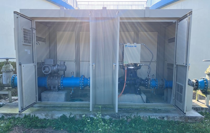 現在の津雲配水場マイクロ水力発電所のようすです。