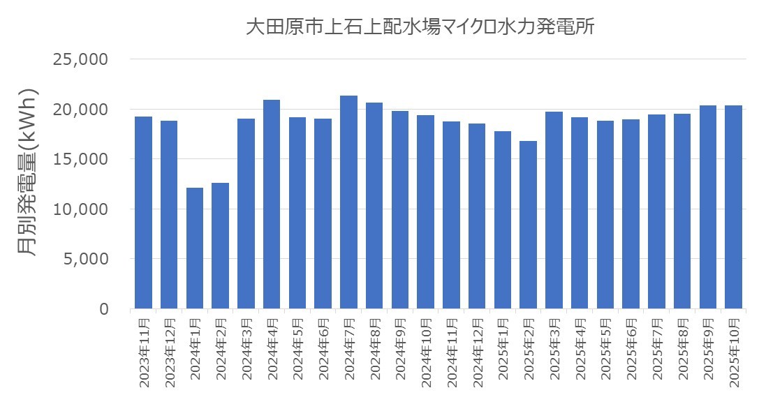 大田原市上石上配水場マイクロ水力発電所は開所式から2年2025-11-21